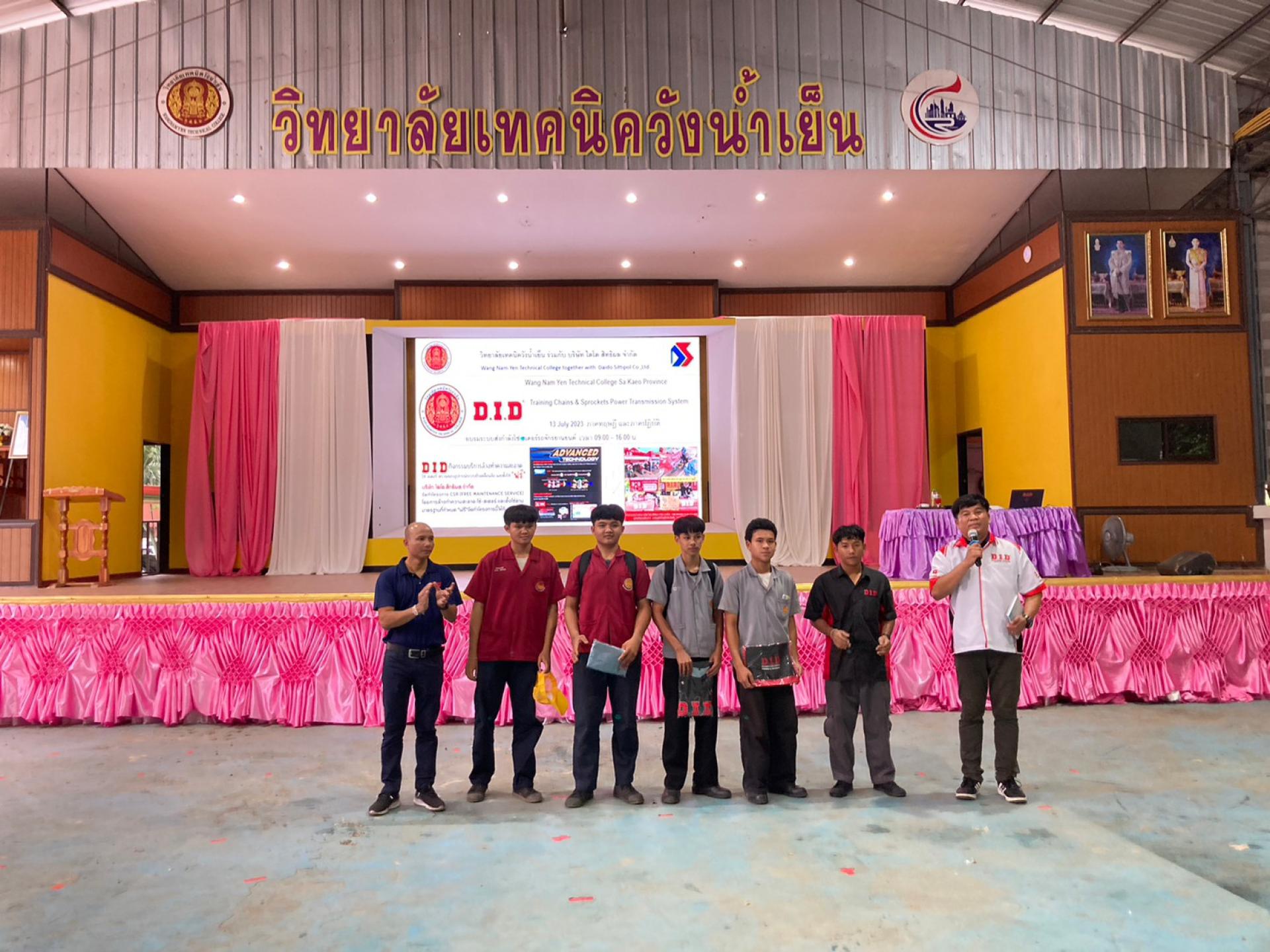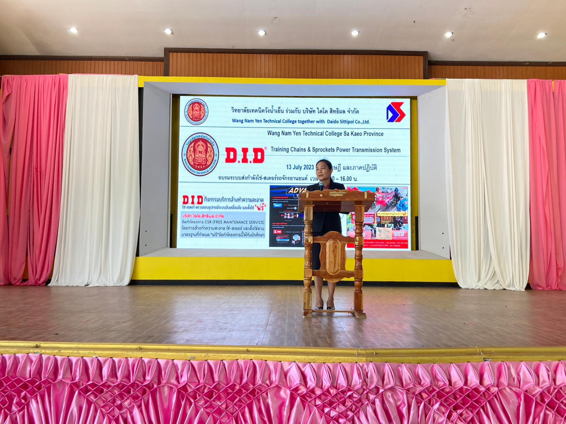 บริษัท ไดโด สิทธิผล จำกัด ผู้ผลิตโซ่สเตอร์ดีไอดี (D.I.D) ร่วมกับวิทยาลัยเทคนิควังน้ำเย็น จังหวัดสระแก้ว ให้การอบรมเรื่องโซ่ สเตอร์ ระบบขับเคลื่อนรถมอเตอร์ไซค์แบบเกียร์ และจัดทำกิจกรรม Tent service ล้างทำความสะอาด เคลือบ การดูแลรักษาที่ถูกต้อง และการถอดประกอบโซ่สเตอร์ ให้กับนักเรียน นักศึกษา โดยช่างผู้ชำนาญงาน และมีการอบรมโดยมีวิทยากร คุณธนศักดิ์ โพธิปักขิย์ เจ้าหน้าที่ฝ่ายขายและการตลาด จากบริษัทฯ อบรมเกี่ยวกับชิ้นส่วนของโซ่ทั้งภาคทฤษฎีและปฏิบัติ และหลังจากจบภาคทฤษฎีมีการแข่งการประกอบโซ่สเตอร์รถจักรยารยนต์ พร้อมมอบประกาศนียบัตรให้กับผู้ที่ผ่านการอบรม เมื่อวันที่ 13 กรกฎาคม ที่ผ่านมา