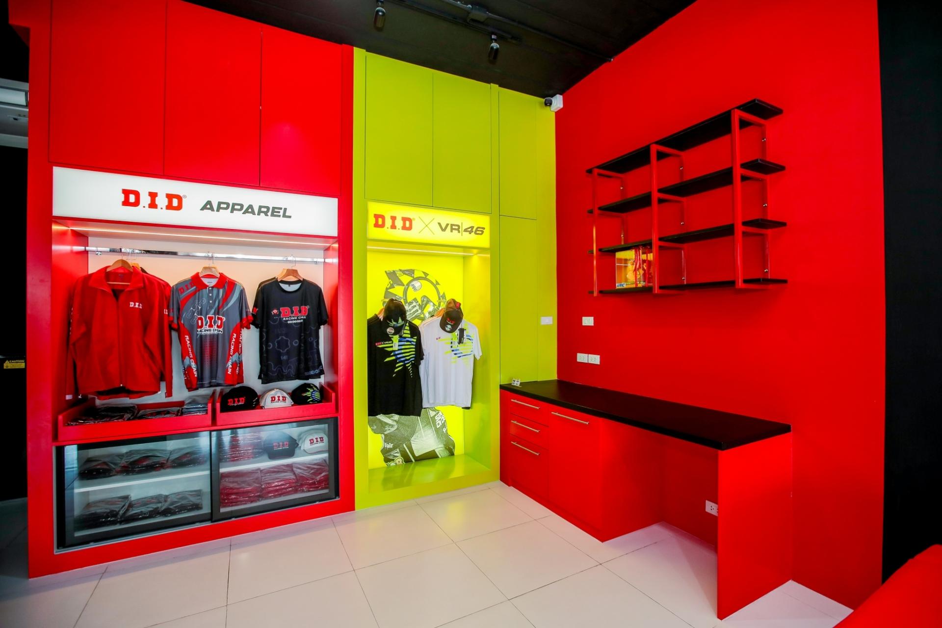 Apparel : โซนสินค้าไลฟ์สไตล์จาก D.I.D ที่มีเสื้อผ้า หมวก และ Accessories มากมาย และยังมี D.I.D x VR46 คอลเลคชั่นพิเศษจาก D.I.D ที่ร่วมออกแบบโดย Valentino Rossi นักแข่งขวัญใจชาวมอเตอร์สปอร์ตทั่วโลก