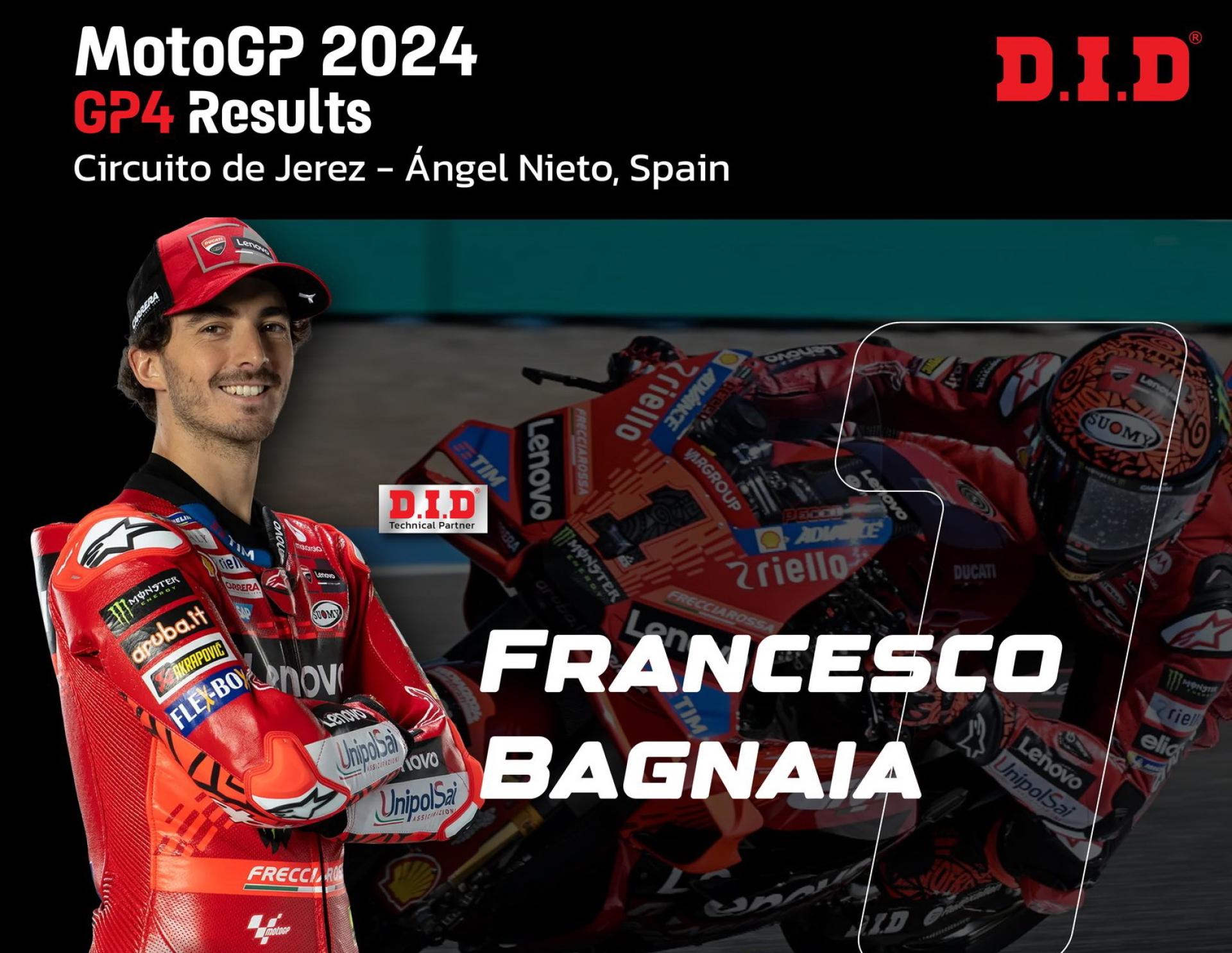 ผลการแข่งขัน MotoGP 2024 สนามที่ 4 ประเทศสเปน ตำแหน่งแชมป์ Francesco Bagnaia