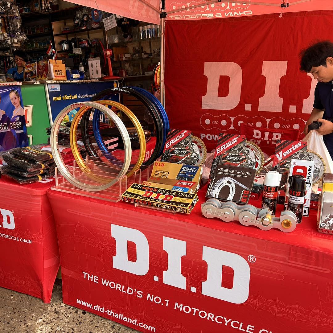 D.I.D แบรนด์โซ่มอเตอร์ไซค์ระดับโลกที่ได้รับความไว้วางใจจากทีมแข่งชั้นนำทั่วโลก มาพร้อมโปรโมชั่นพิเศษสำหรับลูกค้าในงานนี้เท่านั้น ทั้งส่วนลดสุดคุ้ม และบริการให้คำปรึกษาโดยทีมงานผู้เชี่ยวชาญจาก D.I.D โดยตรง