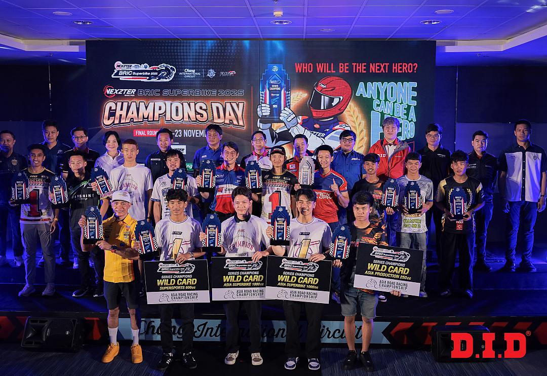 อีกหนึ่งบทพิสูจน์บนสนามแข่งที่แสดงให้เห็นว่า D.I.D คือพลังแห่งความสำเร็จของวงการมอเตอร์สปอร์ตไทย ในปีนี้เหล่านักบิดผู้คว้าชัยจากการแข่งขัน Nexzter BRIC Superbike 2025 ได้สร้างมาตรฐานใหม่แห่งวงการ ผ่านทั้งทักษะ ความเสถียร และวินัยที่นำพาพวกเขาขึ้นสู่จุดสูงสุดของประเทศ