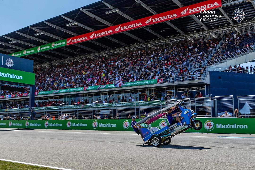 Colorful Thai tuk-tuks took to the MotoGP track, creating a unique and entertaining pre-race showcase. The event blended Thai cultural identity with world-class motorsport, delivering unforgettable visuals for fans in attendance and viewers worldwide.